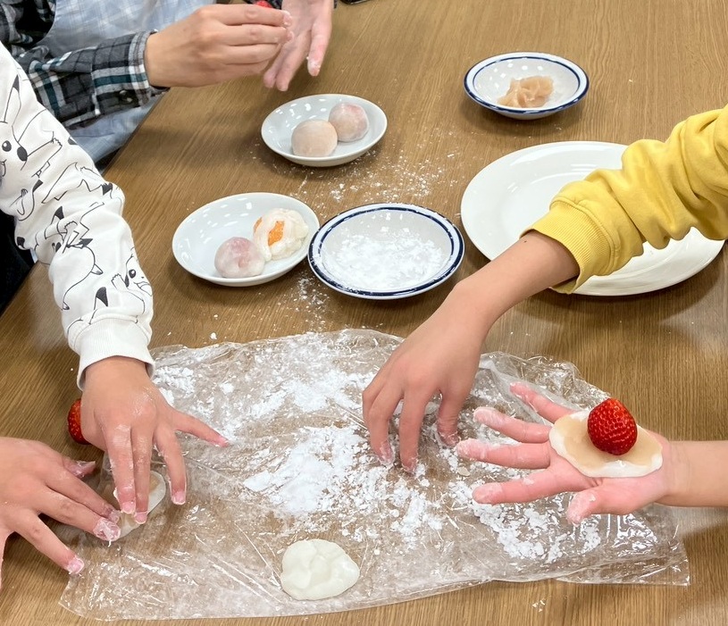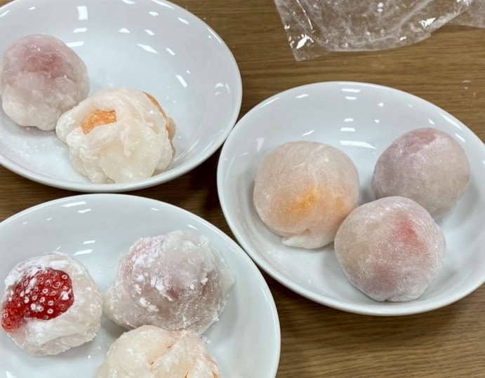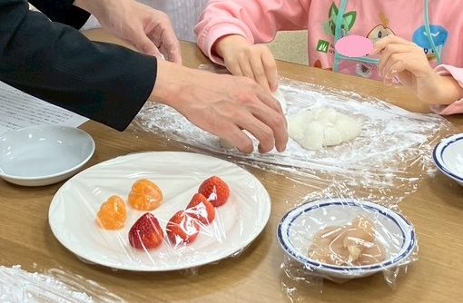 いちご大福をとても上手に作る会員がおり、お父さんと小学生がフルーツ大福にチャレンジしました。