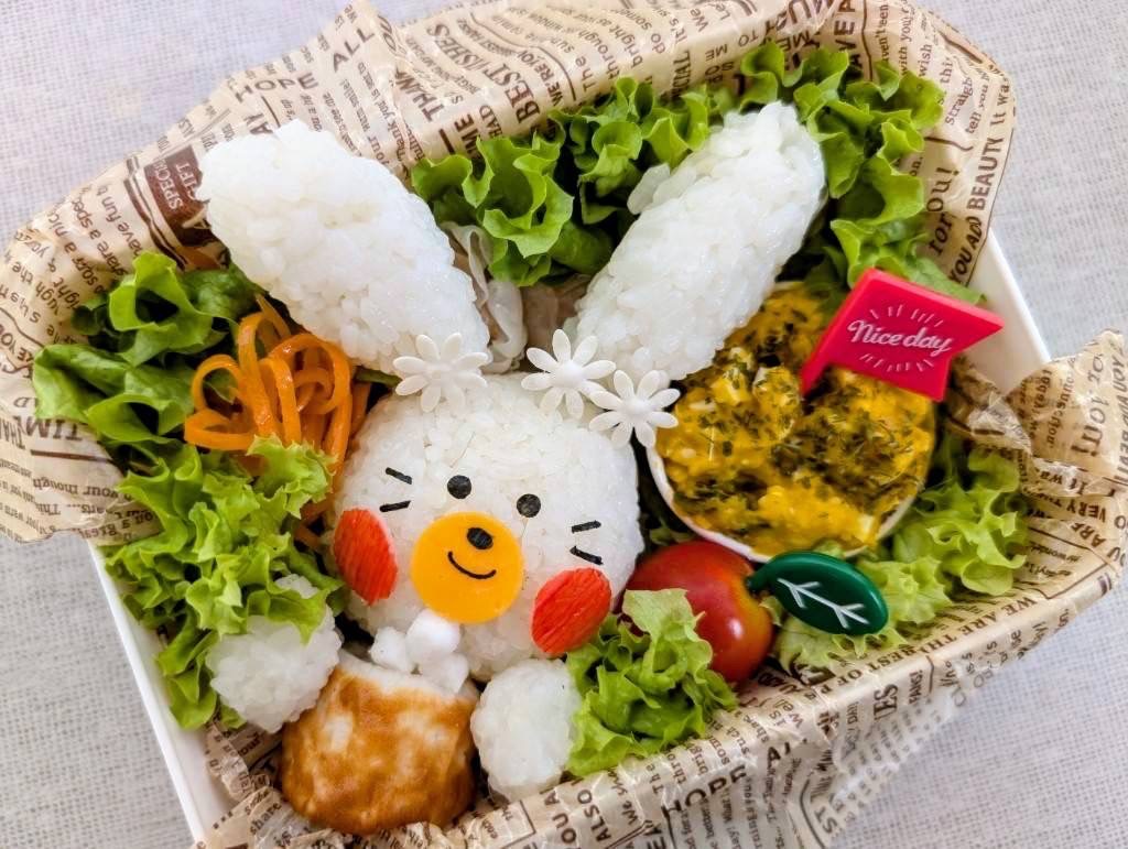 ⑥まず最初にお弁当箱に、うさぎを詰めていきます。