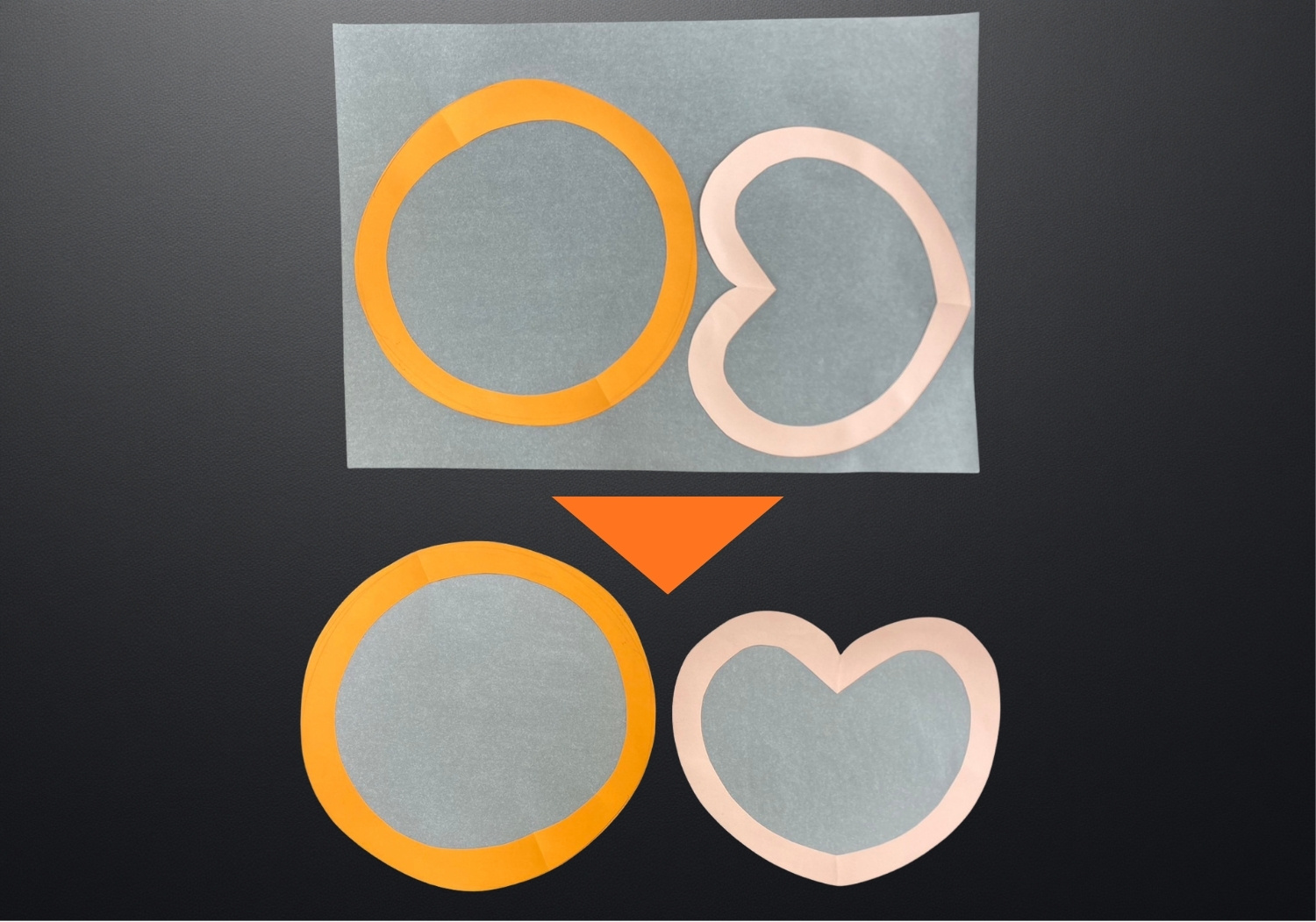 画用紙をトレーシングペーパーに貼り、形にそって切る。