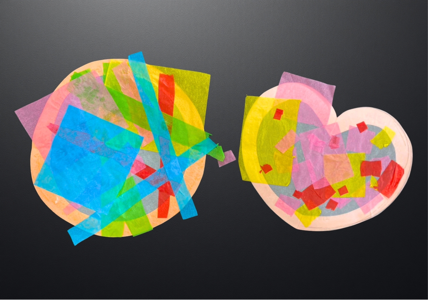 画用紙を裏返してトレーシングペーパーに、お花紙を自由に貼る。