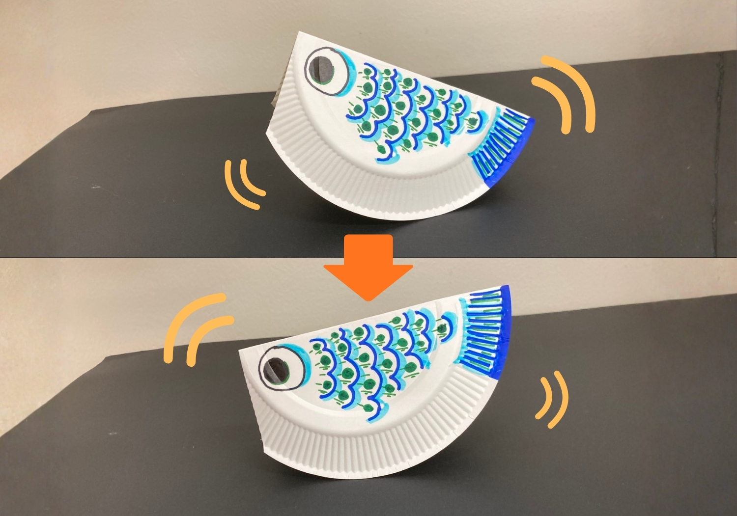 端っこをちょんと触って、こいのぼりをゆらゆら揺らしてみよう。