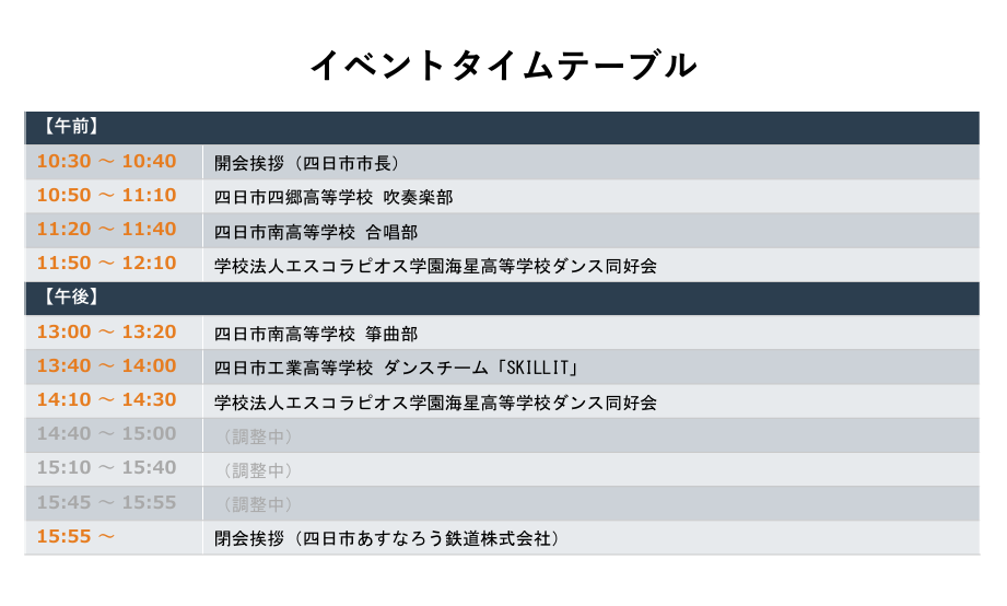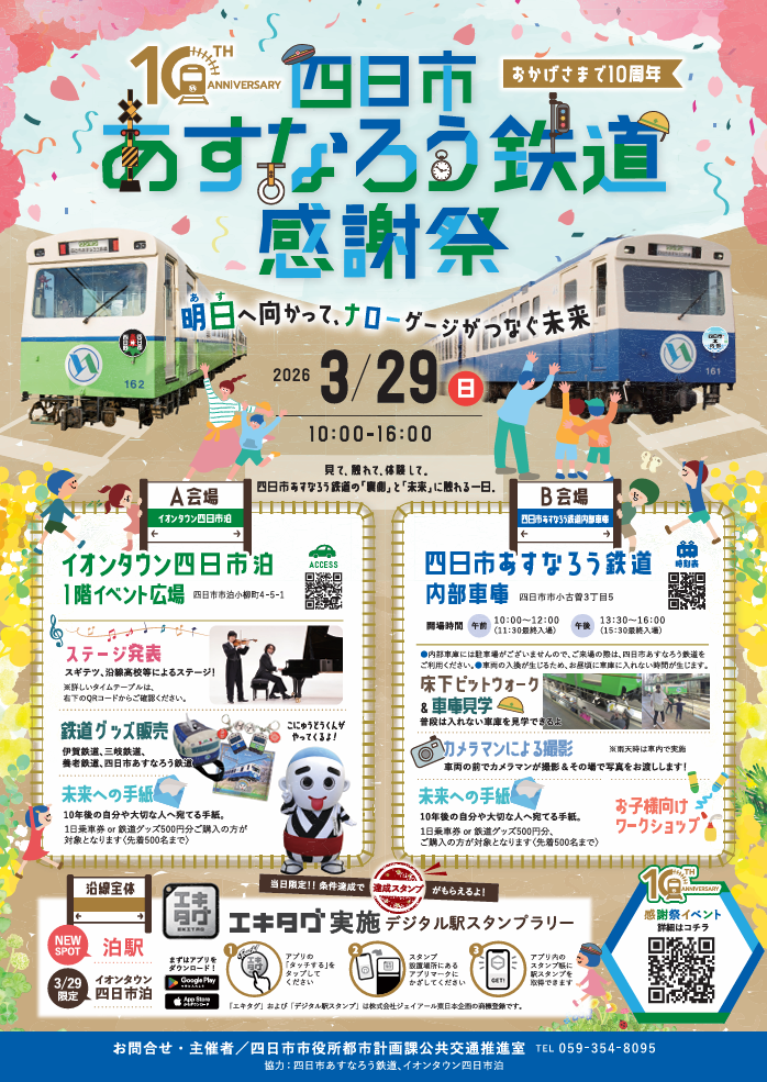 ・イオンタウン四日市泊1階イベント広場 ・四日市あすなろう鉄道内部車庫 |